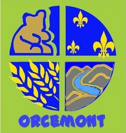 nd sinople (1), un Ours et un Mont et sur fond azur des Fleurs de Lys et des Epis de blé d'Or. Les symboles font donc logiquement référence, comme les symboles héraldiques, au contexte géographique et historique, mais aussi à la vie locale du pays d'ORCEMONT.